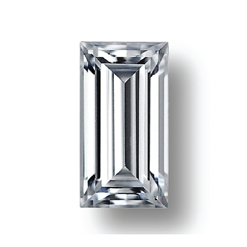 Explanation: The baguette cut is a rectangular shape with long, straight facets and a classic step-cut design, typically used as side stones or in vintage jewelry settings.